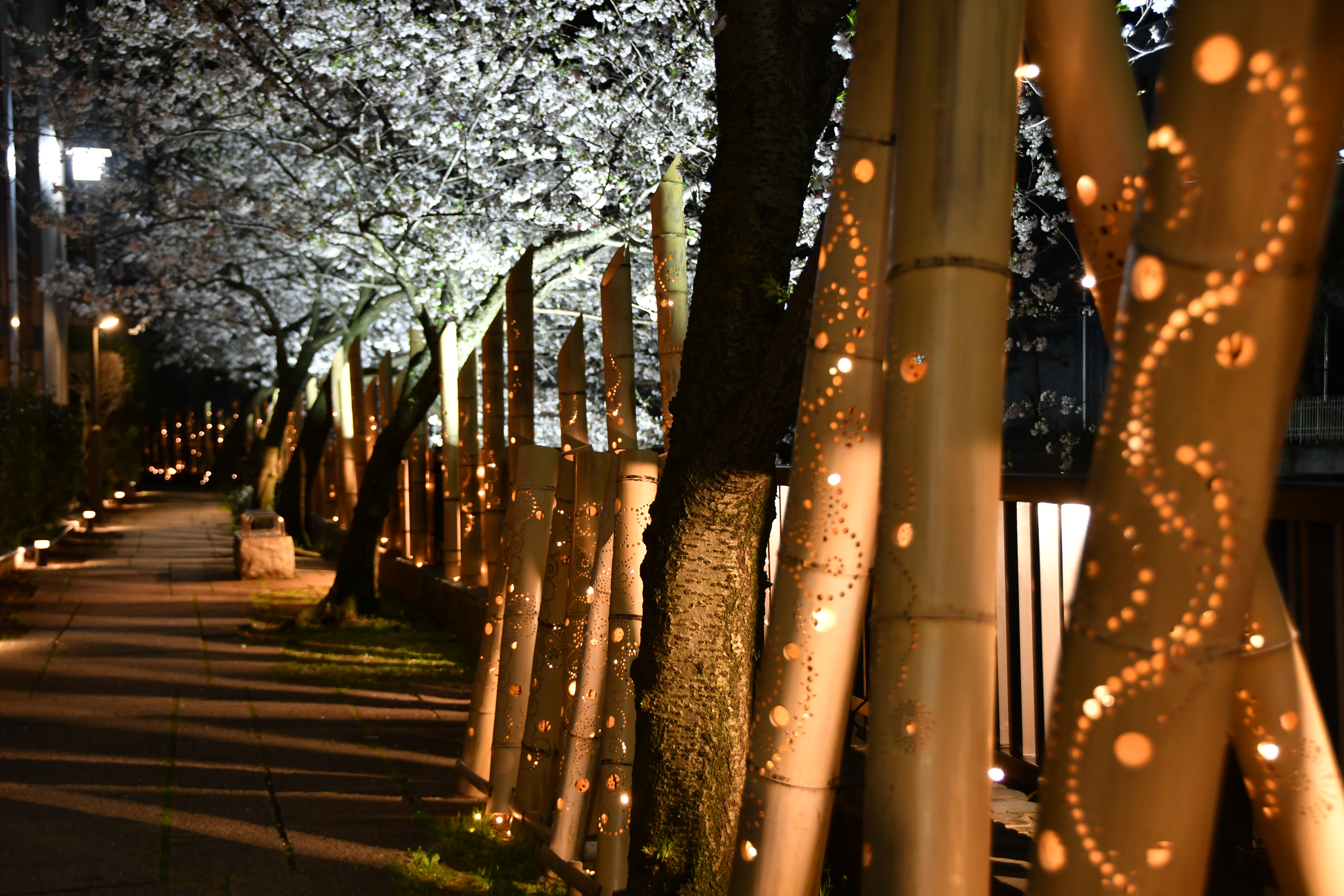 竹灯り×夜桜 松川遊歩道04