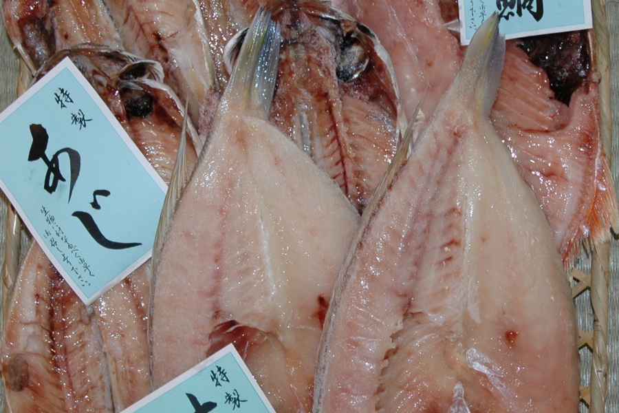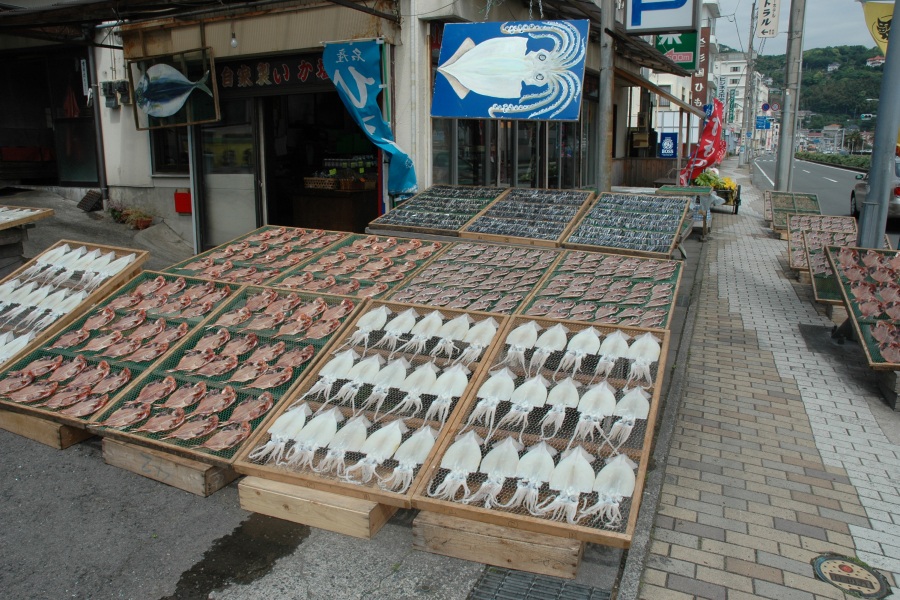 「ひもの開き日本一大会」が開かれる伊東では、干物専門店が点在しています。